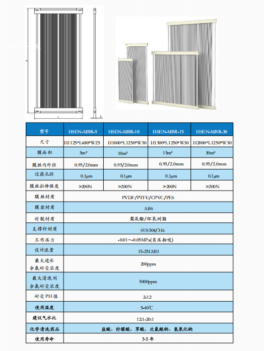 HSEN-MBR产品使用德国亲水改性助剂后,使得膜产品水通量大大提升,在25℃下纯水通量>3000L/㎡·h。同时改性后的膜产品无需保护液保存,方便运输与储存。